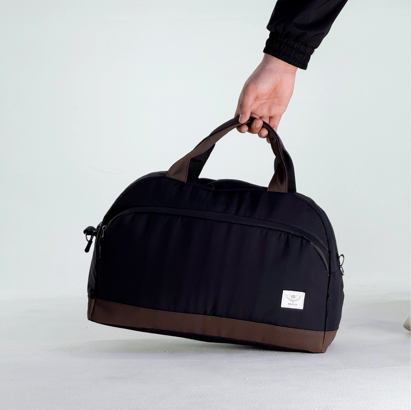 The BELLO Duffel Bag is a spacious and durable travel essential designed for gym sessions, weekend trips, and short travels. Made with water-resistant fabric and zippers.